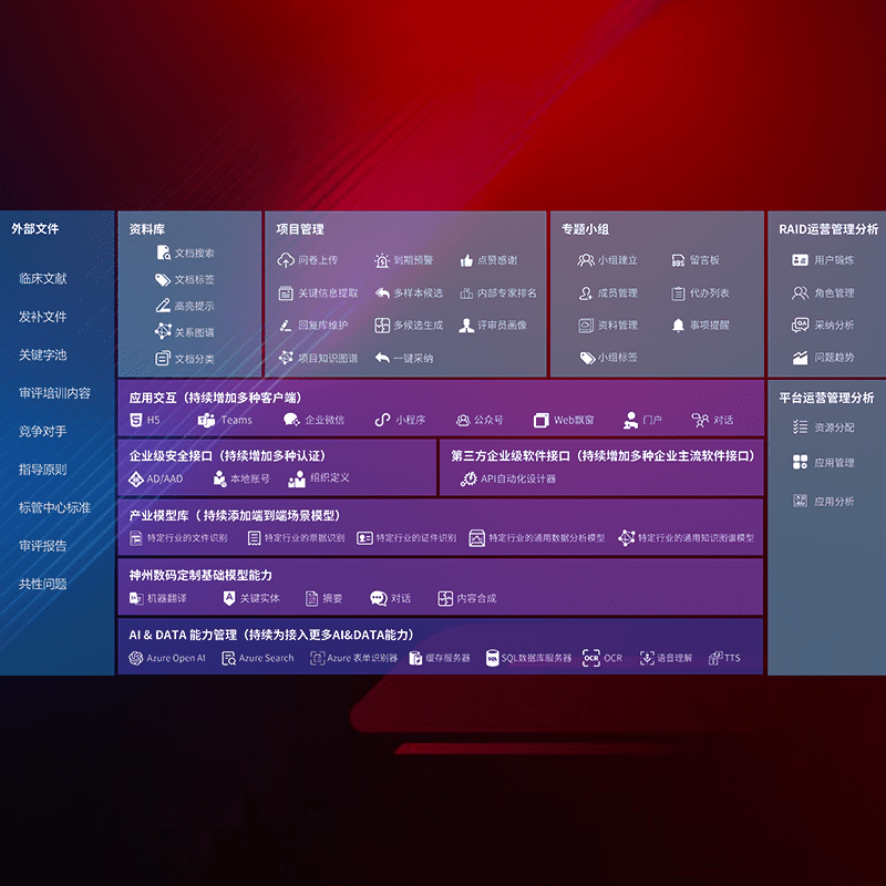 医疗器械产品上市前,,,,要熟悉严格与繁复评审标准,,,,整理分析监管机构指导文件中的海量信息。。。。企业急需一个智能化解决方案,,,,提升知识管理效率,,提高评审通过率,,,以提升其市场竞争力。。